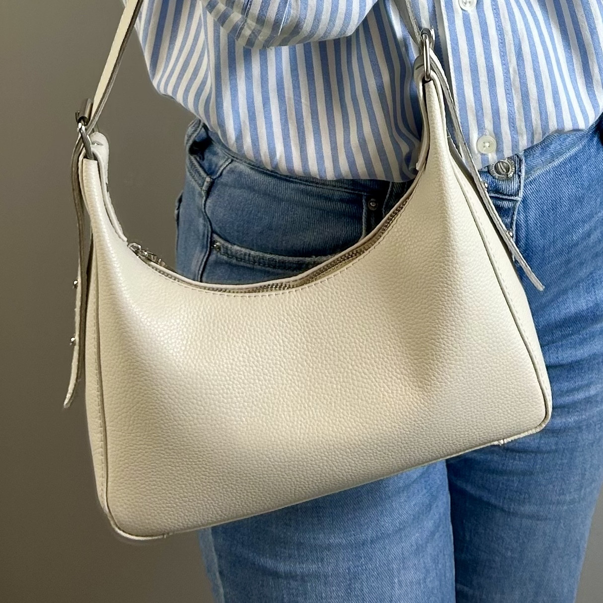 Жіноча бежева шкіряна невелика сумка на плече, маленька класична стильна сумочка, якісні сумки з натуральної шкіри на кожен день